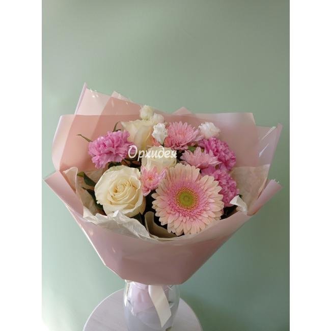 Каждая изготавливаемая флористом цветочная композиция является уникальной и может отличаться внешним видом, размером и оттенками цвета. Также возможны замены по ассортименту и составу цветов в зависимости от сезонности, наличия цветов и т.п. факторов. Итоговое исполнение заказа может незначительно отличаться от иллюстрации на сайте. При этом каждая цветочная композиция составляется из свежих цветов, и флористы предпринимают все усилия для того, чтобы цвет, форма цветочной работы как можно полнее соответствовали иллюстрации на сайте.