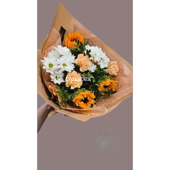 Каждая изготавливаемая флористом цветочная композиция является уникальной и может отличаться внешним видом, размером и оттенками цвета. Также возможны замены по ассортименту и составу цветов в зависимости от сезонности, наличия цветов и т.п. факторов. Итоговое исполнение заказа может незначительно отличаться от иллюстрации на сайте. При этом каждая цветочная композиция составляется из свежих цветов, и флористы предпринимают все усилия для того, чтобы цвет, форма цветочной работы как можно полнее соответствовали иллюстрации на сайте.
