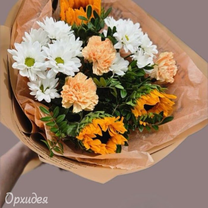 Каждая изготавливаемая флористом цветочная композиция является уникальной и может отличаться внешним видом, размером и оттенками цвета. Также возможны замены по ассортименту и составу цветов в зависимости от сезонности, наличия цветов и т.п. факторов. Итоговое исполнение заказа может незначительно отличаться от иллюстрации на сайте. При этом каждая цветочная композиция составляется из свежих цветов, и флористы предпринимают все усилия для того, чтобы цвет, форма цветочной работы как можно полнее соответствовали иллюстрации на сайте.