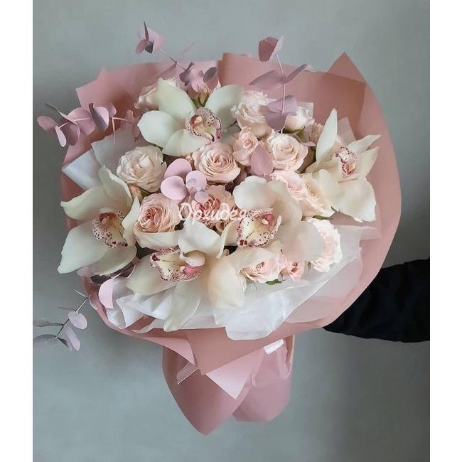 Каждая изготавливаемая флористом цветочная композиция является уникальной и может отличаться внешним видом, размером и оттенками цвета. Также возможны замены по ассортименту и составу цветов в зависимости от сезонности, наличия цветов и т.п. факторов. Итоговое исполнение заказа может незначительно отличаться от иллюстрации на сайте. При этом каждая цветочная композиция составляется из свежих цветов, и флористы предпринимают все усилия для того, чтобы цвет, форма цветочной работы как можно полнее соответствовали иллюстрации на сайте.
