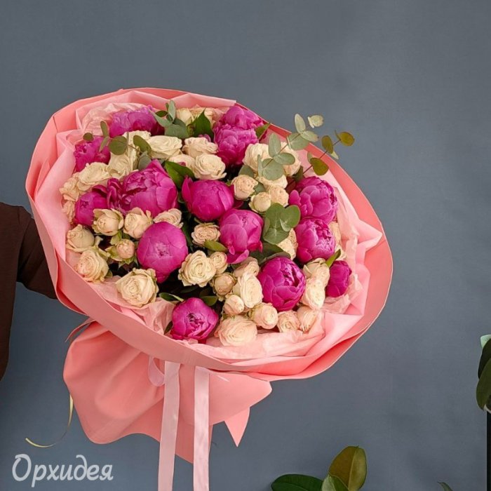 сборный букет пионы и кустовая роза