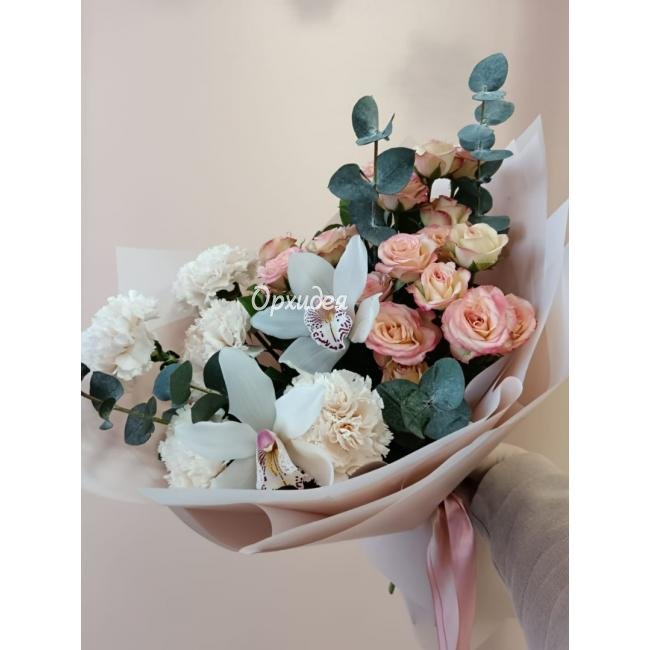 Каждая изготавливаемая флористом цветочная композиция является уникальной и может отличаться внешним видом, размером и оттенками цвета. Также возможны замены по ассортименту и составу цветов в зависимости от сезонности, наличия цветов и т.п. факторов. Итоговое исполнение заказа может незначительно отличаться от иллюстрации на сайте. При этом каждая цветочная композиция составляется из свежих цветов, и флористы предпринимают все усилия для того, чтобы цвет, форма цветочной работы как можно полнее соответствовали иллюстрации на сайте.