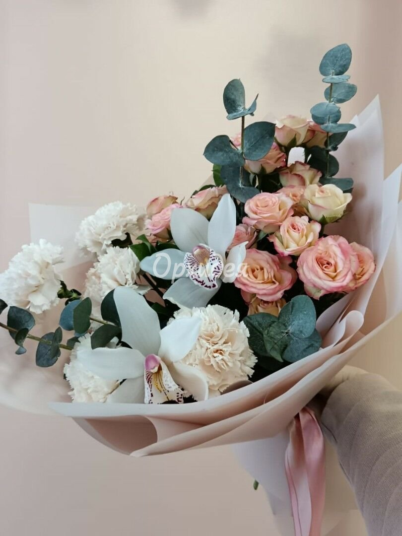 Каждая изготавливаемая флористом цветочная композиция является уникальной и может отличаться внешним видом, размером и оттенками цвета. Также возможны замены по ассортименту и составу цветов в зависимости от сезонности, наличия цветов и т.п. факторов. Итоговое исполнение заказа может незначительно отличаться от иллюстрации на сайте. При этом каждая цветочная композиция составляется из свежих цветов, и флористы предпринимают все усилия для того, чтобы цвет, форма цветочной работы как можно полнее соответствовали иллюстрации на сайте.