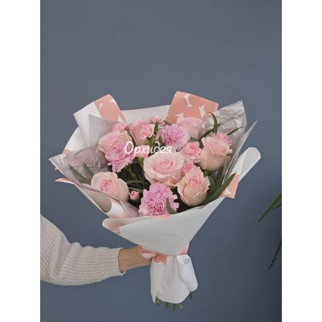 Каждая изготавливаемая флористом цветочная композиция является уникальной и может отличаться внешним видом, размером и оттенками цвета. Также возможны замены по ассортименту и составу цветов в зависимости от сезонности, наличия цветов и т.п. факторов. Итоговое исполнение заказа может незначительно отличаться от иллюстрации на сайте. При этом каждая цветочная композиция составляется из свежих цветов, и флористы предпринимают все усилия для того, чтобы цвет, форма цветочной работы как можно полнее соответствовали иллюстрации на сайте.