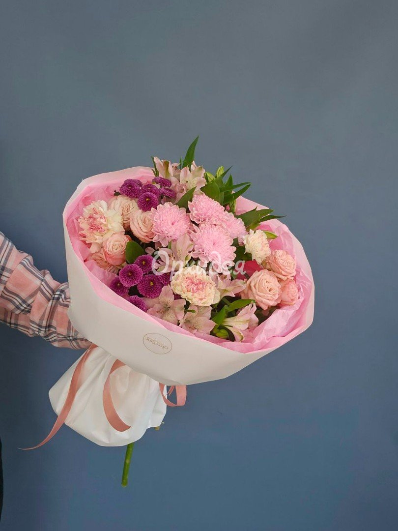 Каждая изготавливаемая флористом цветочная композиция является уникальной и может отличаться внешним видом, размером и оттенками цвета. Также возможны замены по ассортименту и составу цветов в зависимости от сезонности, наличия цветов и т.п. факторов. Итоговое исполнение заказа может незначительно отличаться от иллюстрации на сайте. При этом каждая цветочная композиция составляется из свежих цветов, и флористы предпринимают все усилия для того, чтобы цвет, форма цветочной работы как можно полнее соответствовали иллюстрации на сайте.