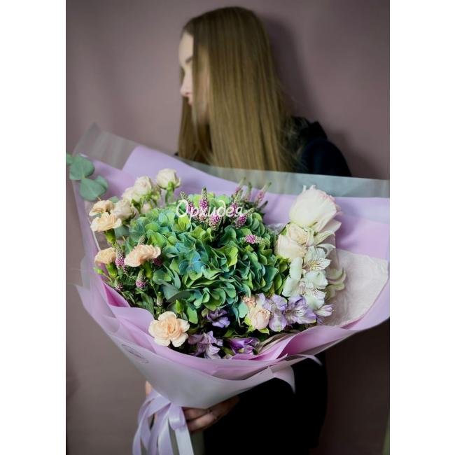 Каждая изготавливаемая флористом цветочная композиция является уникальной и может отличаться внешним видом, размером и оттенками цвета. Также возможны замены по ассортименту и составу цветов в зависимости от сезонности, наличия цветов и т.п. факторов. Итоговое исполнение заказа может незначительно отличаться от иллюстрации на сайте. При этом каждая цветочная композиция составляется из свежих цветов, и флористы предпринимают все усилия для того, чтобы цвет, форма цветочной работы как можно полнее соответствовали иллюстрации на сайте.