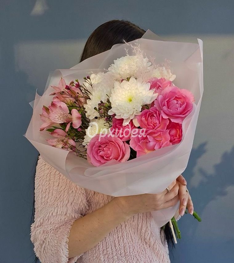 Каждая изготавливаемая флористом цветочная композиция является уникальной и может отличаться внешним видом, размером и оттенками цвета. Также возможны замены по ассортименту и составу цветов в зависимости от сезонности, наличия цветов и т.п. факторов. Итоговое исполнение заказа может незначительно отличаться от иллюстрации на сайте. При этом каждая цветочная композиция составляется из свежих цветов, и флористы предпринимают все усилия для того, чтобы цвет, форма цветочной работы как можно полнее соответствовали иллюстрации на сайте.