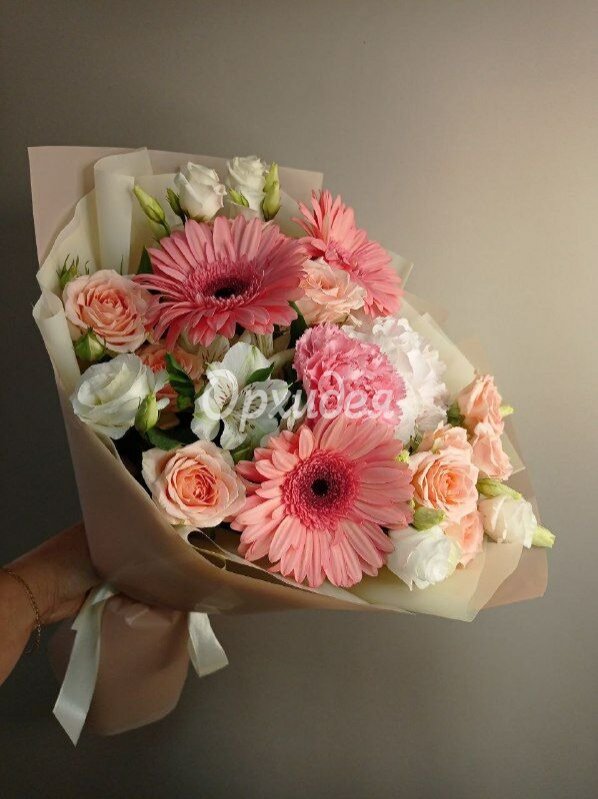 Заказывала букет «Жемчужный узор» для коллеги. Спасибо, букет на картинке и доставили вовремя