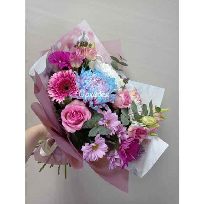 Каждая изготавливаемая флористом цветочная композиция является уникальной и может отличаться внешним видом, размером и оттенками цвета. Также возможны замены по ассортименту и составу цветов в зависимости от сезонности, наличия цветов и т.п. факторов. Итоговое исполнение заказа может незначительно отличаться от иллюстрации на сайте. При этом каждая цветочная композиция составляется из свежих цветов, и флористы предпринимают все усилия для того, чтобы цвет, форма цветочной работы как можно полнее соответствовали иллюстрации на сайте.
