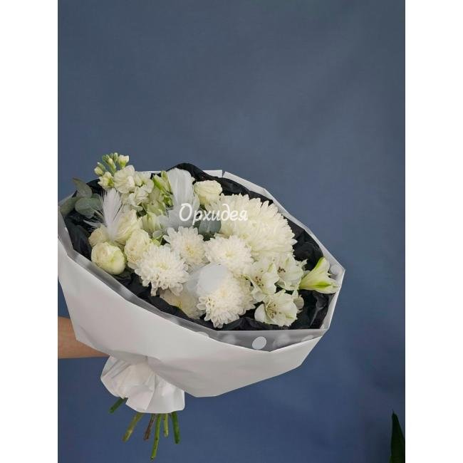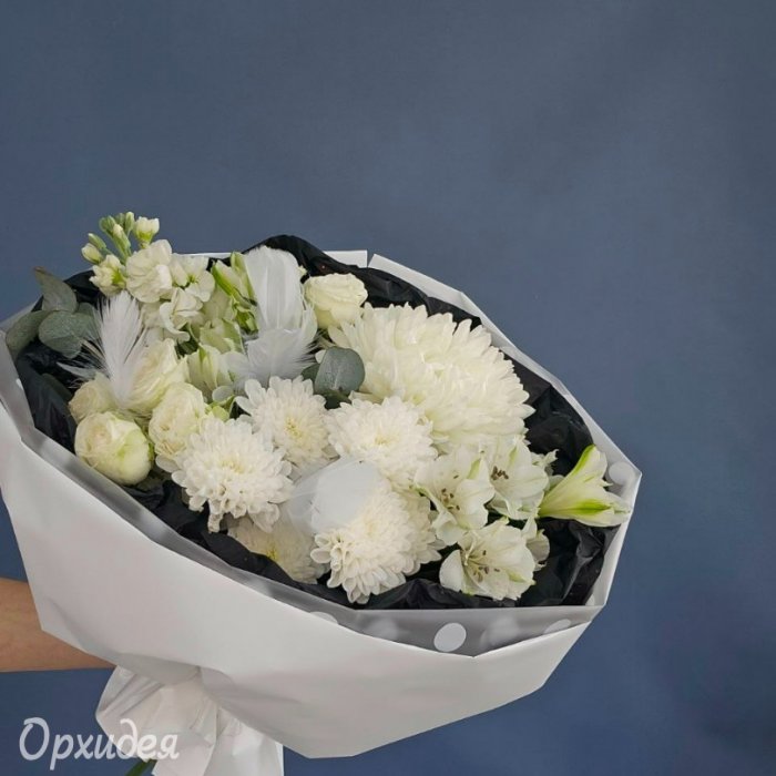 Каждая изготавливаемая флористом цветочная композиция является уникальной и может отличаться внешним видом, размером и оттенками цвета. Также возможны замены по ассортименту и составу цветов в зависимости от сезонности, наличия цветов и т.п. факторов. Итоговое исполнение заказа может незначительно отличаться от иллюстрации на сайте. При этом каждая цветочная композиция составляется из свежих цветов, и флористы предпринимают все усилия для того, чтобы цвет, форма цветочной работы как можно полнее соответствовали иллюстрации на сайте.