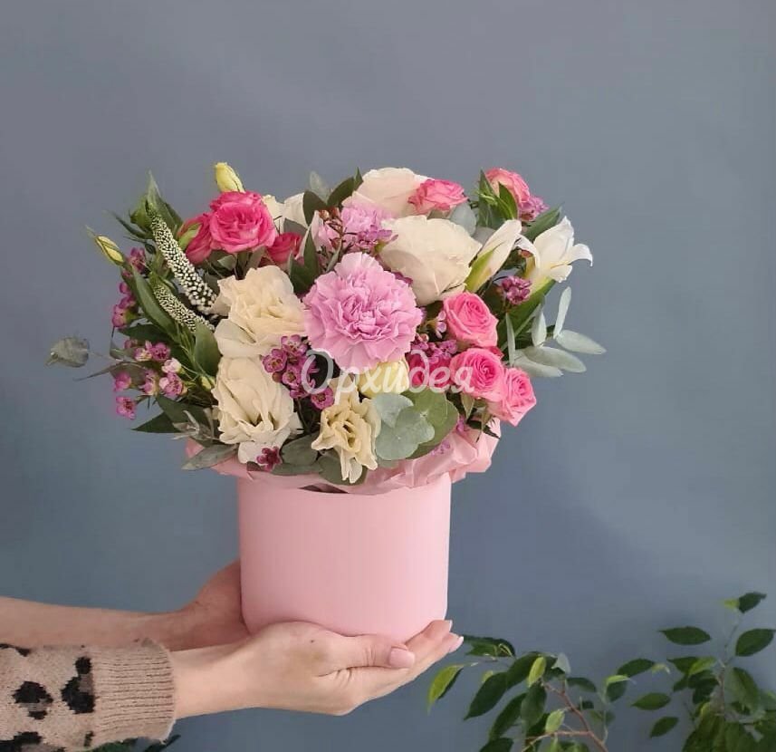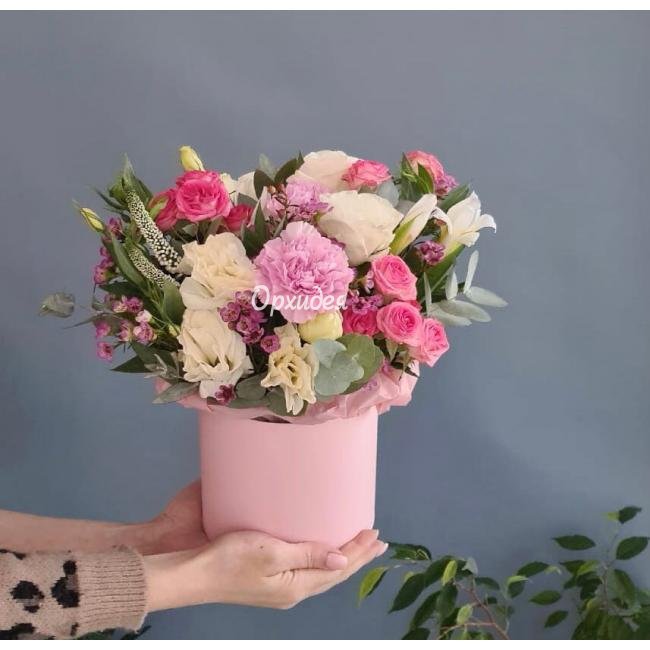 Описание Эта цветочная композиция для очаровательной девушки, которая следует модным тенденциям, так же композиция удачно подойдёт в качестве подарка на любой праздник.