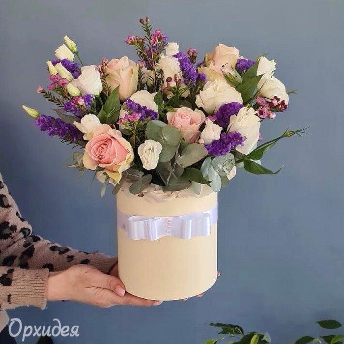 Каждая изготавливаемая флористом цветочная композиция является уникальной и может отличаться внешним видом, размером и оттенками цвета. Также возможны замены по ассортименту и составу цветов в зависимости от сезонности, наличия цветов и т.п. факторов. Итоговое исполнение заказа может незначительно отличаться от иллюстрации на сайте. При этом каждая цветочная композиция составляется из свежих цветов, и флористы предпринимают все усилия для того, чтобы цвет, форма цветочной работы как можно полнее соответствовали иллюстрации на сайте.