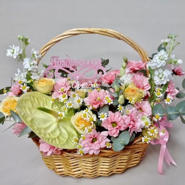 Каждая изготавливаемая флористом цветочная композиция является уникальной и может отличаться внешним видом, размером и оттенками цвета. Также возможны замены по ассортименту и составу цветов в зависимости от сезонности, наличия цветов и т.п. факторов. Итоговое исполнение заказа может незначительно отличаться от иллюстрации на сайте. При этом каждая цветочная композиция составляется из свежих цветов, и флористы предпринимают все усилия для того, чтобы цвет, форма цветочной работы как можно полнее соответствовали иллюстрации на сайте.