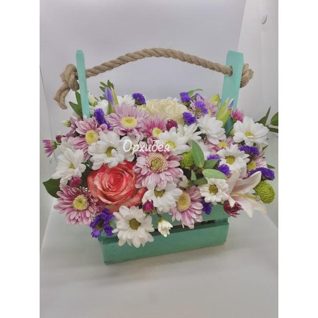 Каждая изготавливаемая флористом цветочная композиция является уникальной и может отличаться внешним видом, размером и оттенками цвета. Также возможны замены по ассортименту и составу цветов в зависимости от сезонности, наличия цветов и т.п. факторов. Итоговое исполнение заказа может незначительно отличаться от иллюстрации на сайте. При этом каждая цветочная композиция составляется из свежих цветов, и флористы предпринимают все усилия для того, чтобы цвет, форма цветочной работы как можно полнее соответствовали иллюстрации на сайте.