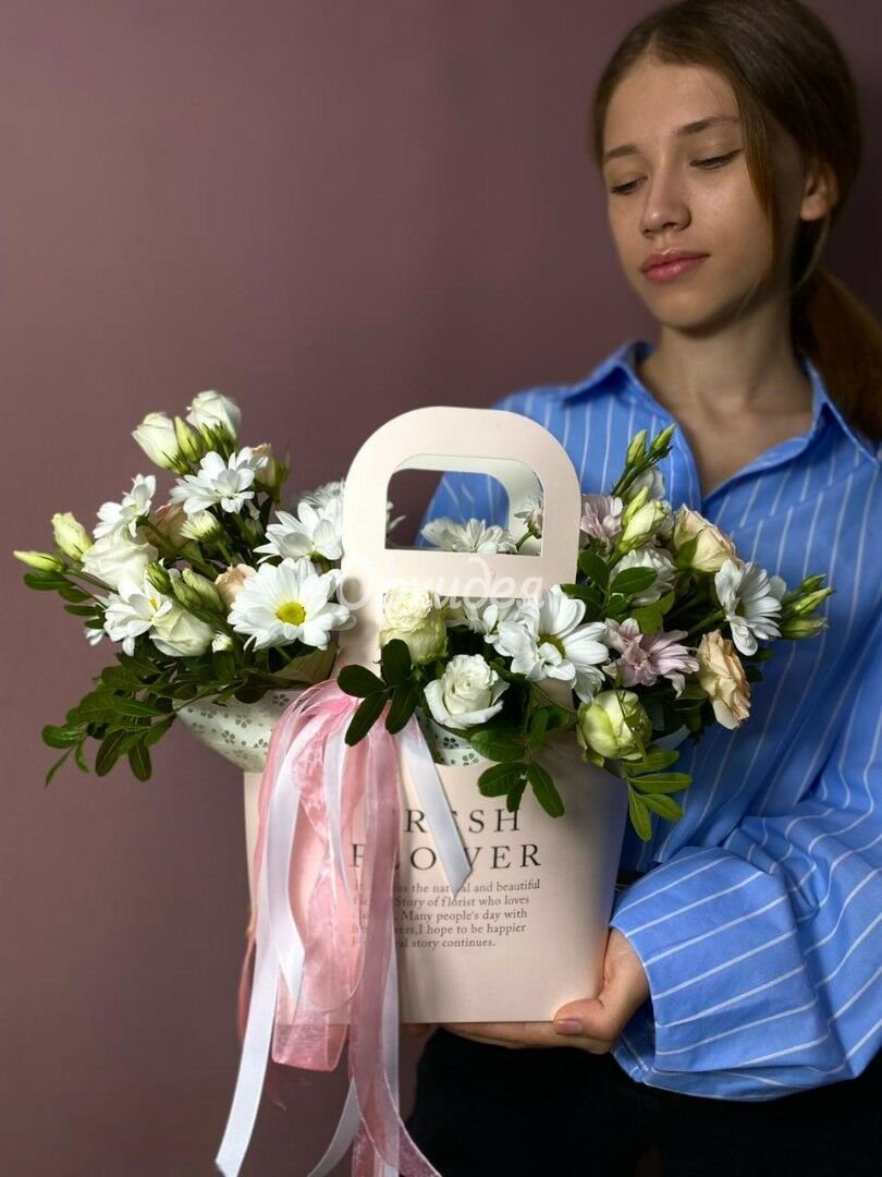 Каждая изготавливаемая флористом цветочная композиция является уникальной и может отличаться внешним видом, размером и оттенками цвета. Также возможны замены по ассортименту и составу цветов в зависимости от сезонности, наличия цветов и т.п. факторов. Итоговое исполнение заказа может незначительно отличаться от иллюстрации на сайте. При этом каждая цветочная композиция составляется из свежих цветов, и флористы предпринимают все усилия для того, чтобы цвет, форма цветочной работы как можно полнее соответствовали иллюстрации на сайте.