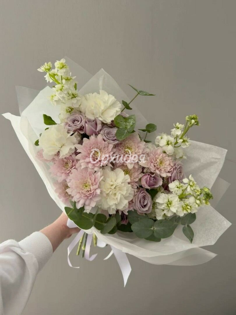 Каждая изготавливаемая флористом цветочная композиция является уникальной и может отличаться внешним видом, размером и оттенками цвета. Также возможны замены по ассортименту и составу цветов в зависимости от сезонности, наличия цветов и т.п. факторов. Итоговое исполнение заказа может незначительно отличаться от иллюстрации на сайте. При этом каждая цветочная композиция составляется из свежих цветов, и флористы предпринимают все усилия для того, чтобы цвет, форма цветочной работы как можно полнее соответствовали иллюстрации на сайте.