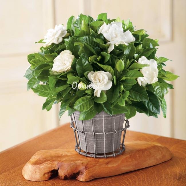 Описание Гардения в ассортименте. В зависимости от размера стоимость горшечного цветка может меняться. В стоимость не входит декоративный горшок.