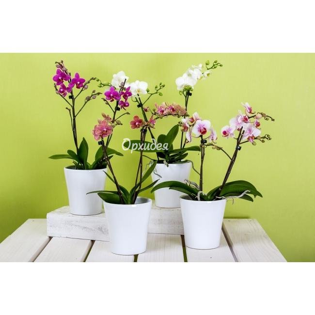 Описание Орхидея фаленопсис в ассортименте. В зависимости от размера стоимость горшечного цветка может меняться. В стоимость не входит декоративный горшок.