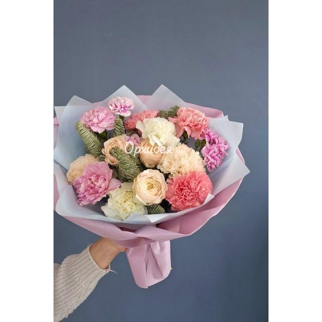 Каждая изготавливаемая флористом цветочная композиция является уникальной и может отличаться внешним видом, размером и оттенками цвета. Также возможны замены по ассортименту и составу цветов в зависимости от сезонности, наличия цветов и т.п. факторов. Итоговое исполнение заказа может незначительно отличаться от иллюстрации на сайте. При этом каждая цветочная композиция составляется из свежих цветов, и флористы предпринимают все усилия для того, чтобы цвет, форма цветочной работы как можно полнее соответствовали иллюстрации на сайте.