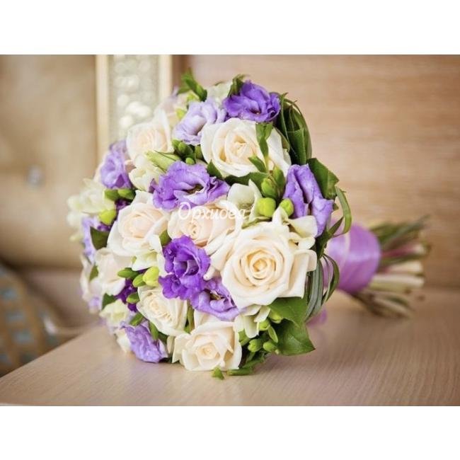 Описание Букет из роз, эустом и зелени для обаятельной невесты