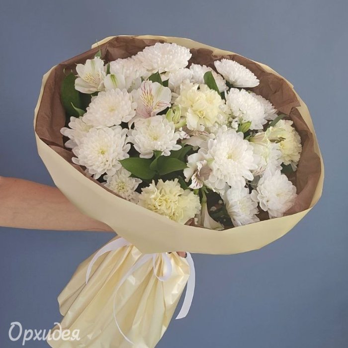 Каждая изготавливаемая флористом цветочная композиция является уникальной и может отличаться внешним видом, размером и оттенками цвета. Также возможны замены по ассортименту и составу цветов в зависимости от сезонности, наличия цветов и т.п. факторов. Итоговое исполнение заказа может незначительно отличаться от иллюстрации на сайте. При этом каждая цветочная композиция составляется из свежих цветов, и флористы предпринимают все усилия для того, чтобы цвет, форма цветочной работы как можно полнее соответствовали иллюстрации на сайте.