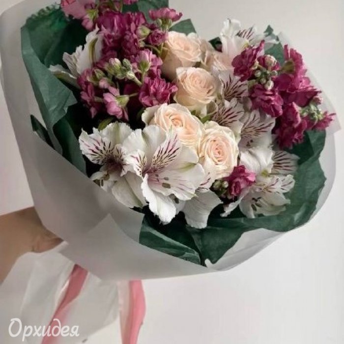 Каждая изготавливаемая флористом цветочная композиция является уникальной и может отличаться внешним видом, размером и оттенками цвета. Также возможны замены по ассортименту и составу цветов в зависимости от сезонности, наличия цветов и т.п. факторов. Итоговое исполнение заказа может незначительно отличаться от иллюстрации на сайте. При этом каждая цветочная композиция составляется из свежих цветов, и флористы предпринимают все усилия для того, чтобы цвет, форма цветочной работы как можно полнее соответствовали иллюстрации на сайте.