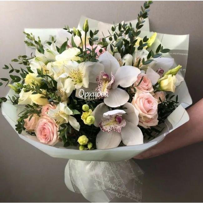 Каждая изготавливаемая флористом цветочная композиция является уникальной и может отличаться внешним видом, размером и оттенками цвета. Также возможны замены по ассортименту и составу цветов в зависимости от сезонности, наличия цветов и т.п. факторов. Итоговое исполнение заказа может незначительно отличаться от иллюстрации на сайте. При этом каждая цветочная композиция составляется из свежих цветов, и флористы предпринимают все усилия для того, чтобы цвет, форма цветочной работы как можно полнее соответствовали иллюстрации на сайте.