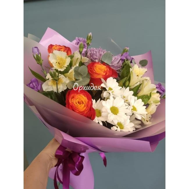 Каждая изготавливаемая флористом цветочная композиция является уникальной и может отличаться внешним видом, размером и оттенками цвета. Также возможны замены по ассортименту и составу цветов в зависимости от сезонности, наличия цветов и т.п. факторов. Итоговое исполнение заказа может незначительно отличаться от иллюстрации на сайте. При этом каждая цветочная композиция составляется из свежих цветов, и флористы предпринимают все усилия для того, чтобы цвет, форма цветочной работы как можно полнее соответствовали иллюстрации на сайте.
